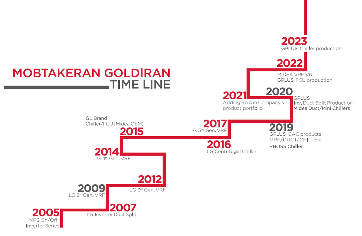 The strength of Goldiran brand in the path of sustainable development Increasing the competitive value of the product by using the latest world technology Developing production and increasing product portfolio diversity in the air conditioning market